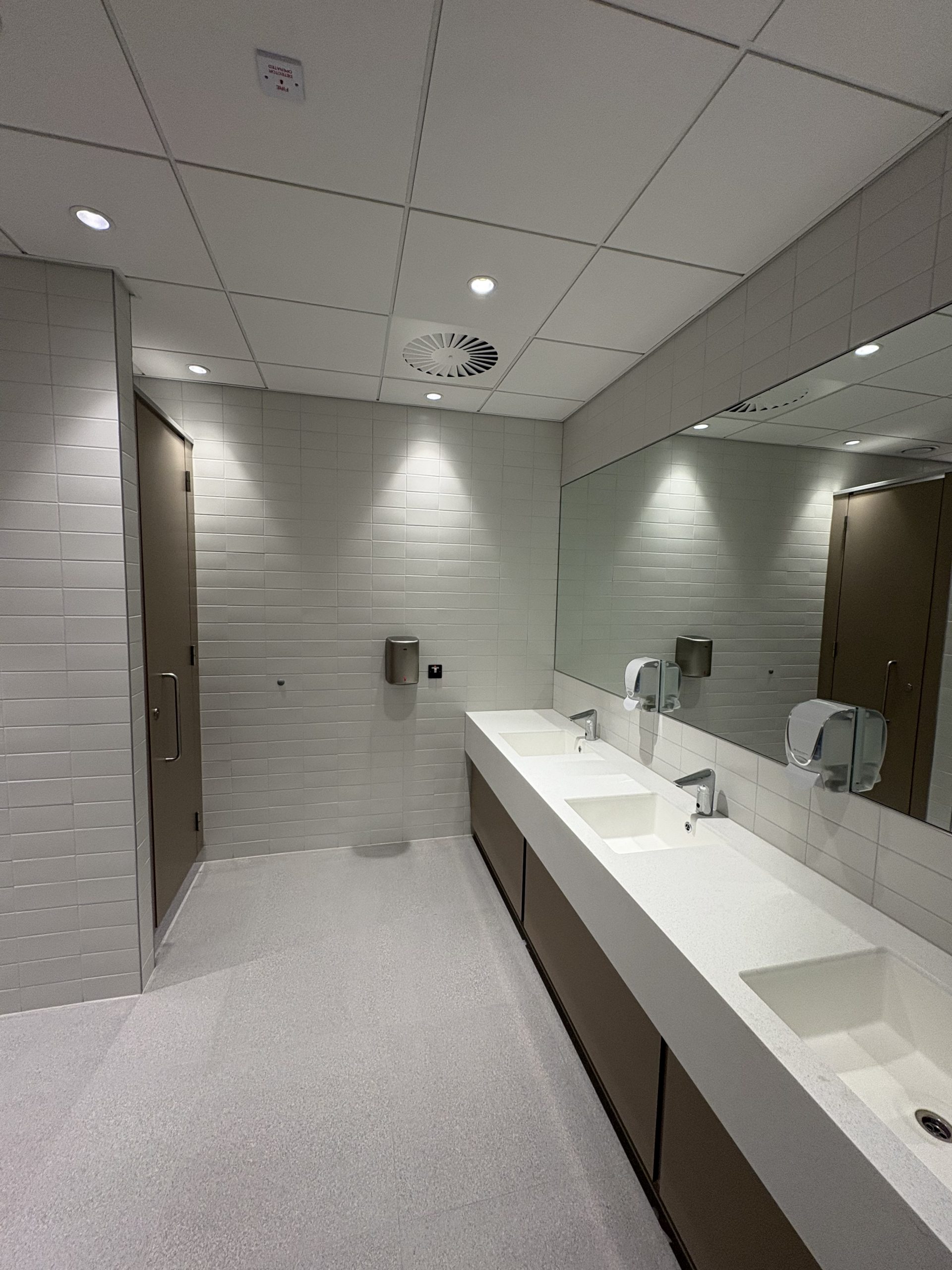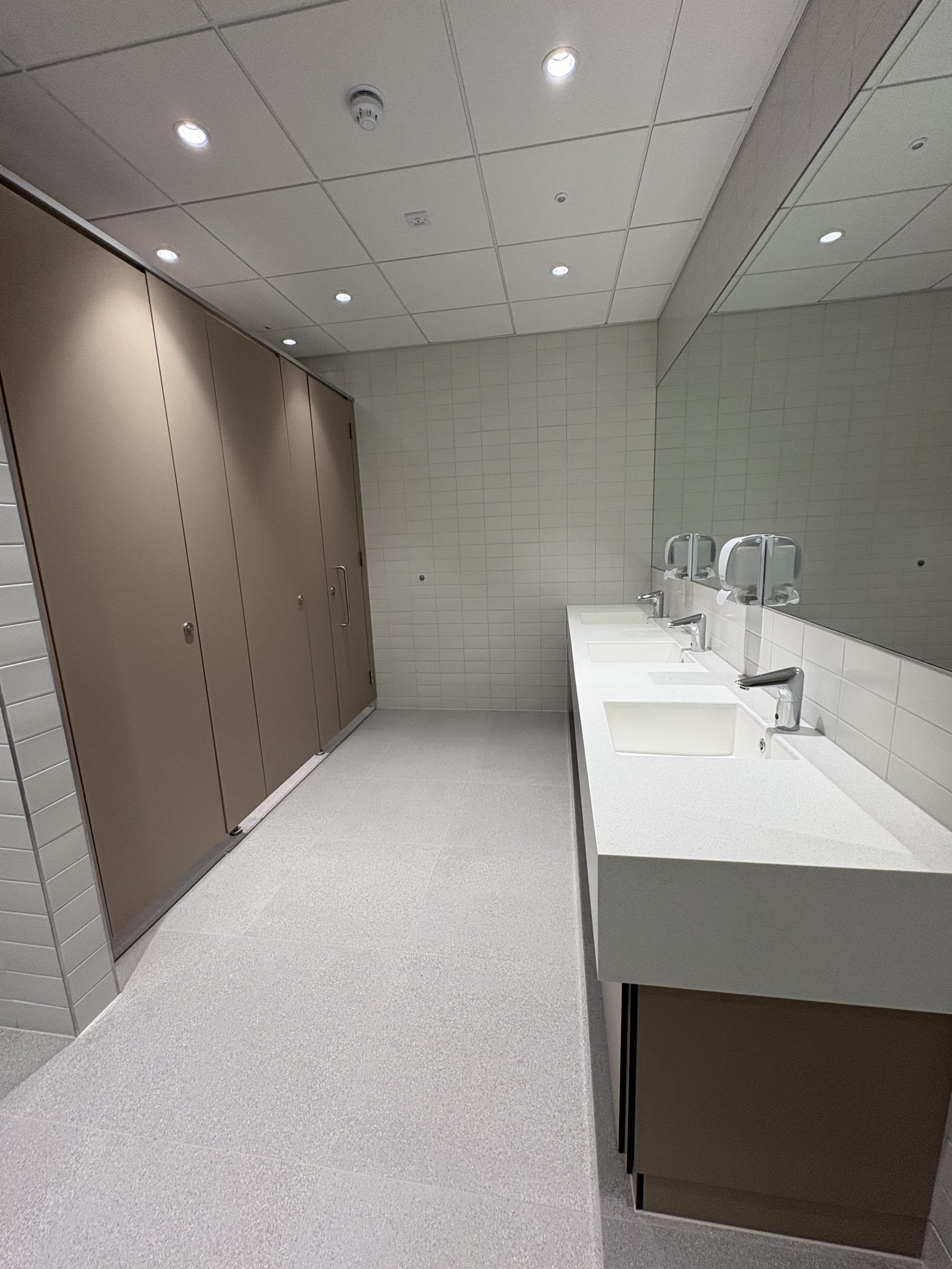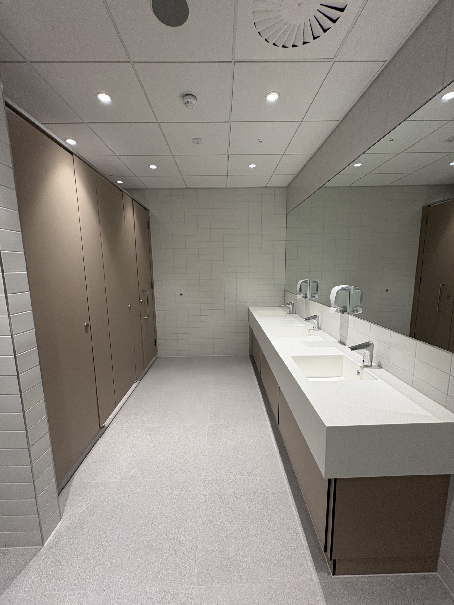 Completed in January 2026, Petal’s remit on this phase was to produce a functional, hard wearing and visually impactful cubicle & washroom solution for all male female WCs across four floors from Ground to Third floor.